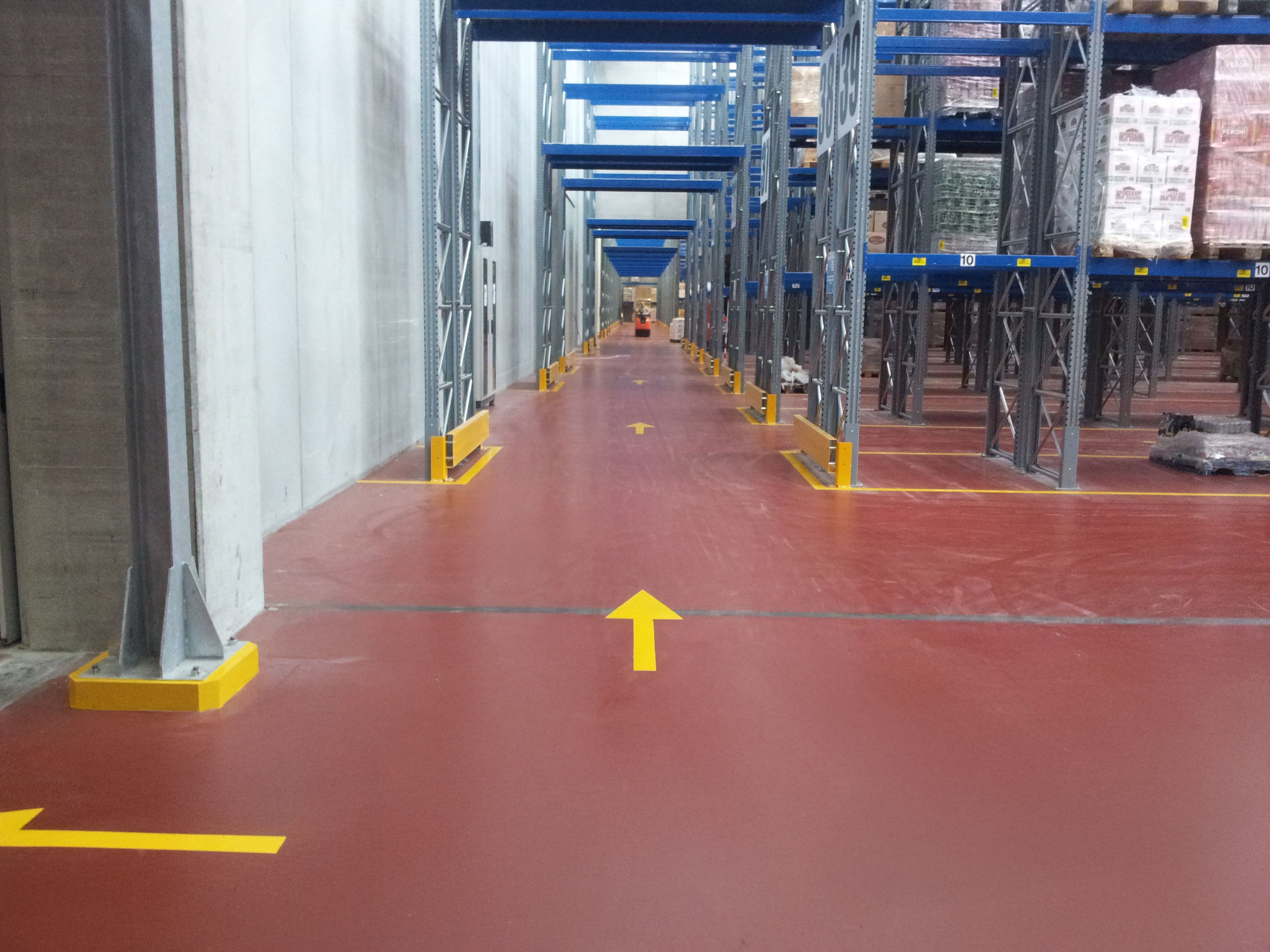 La pavimentazioni in resina offrono un’ottima resistenza all’usura, la possibilità di identificare percorsi carrelli, percorsi pedonali, aree di stazionamento merci.
