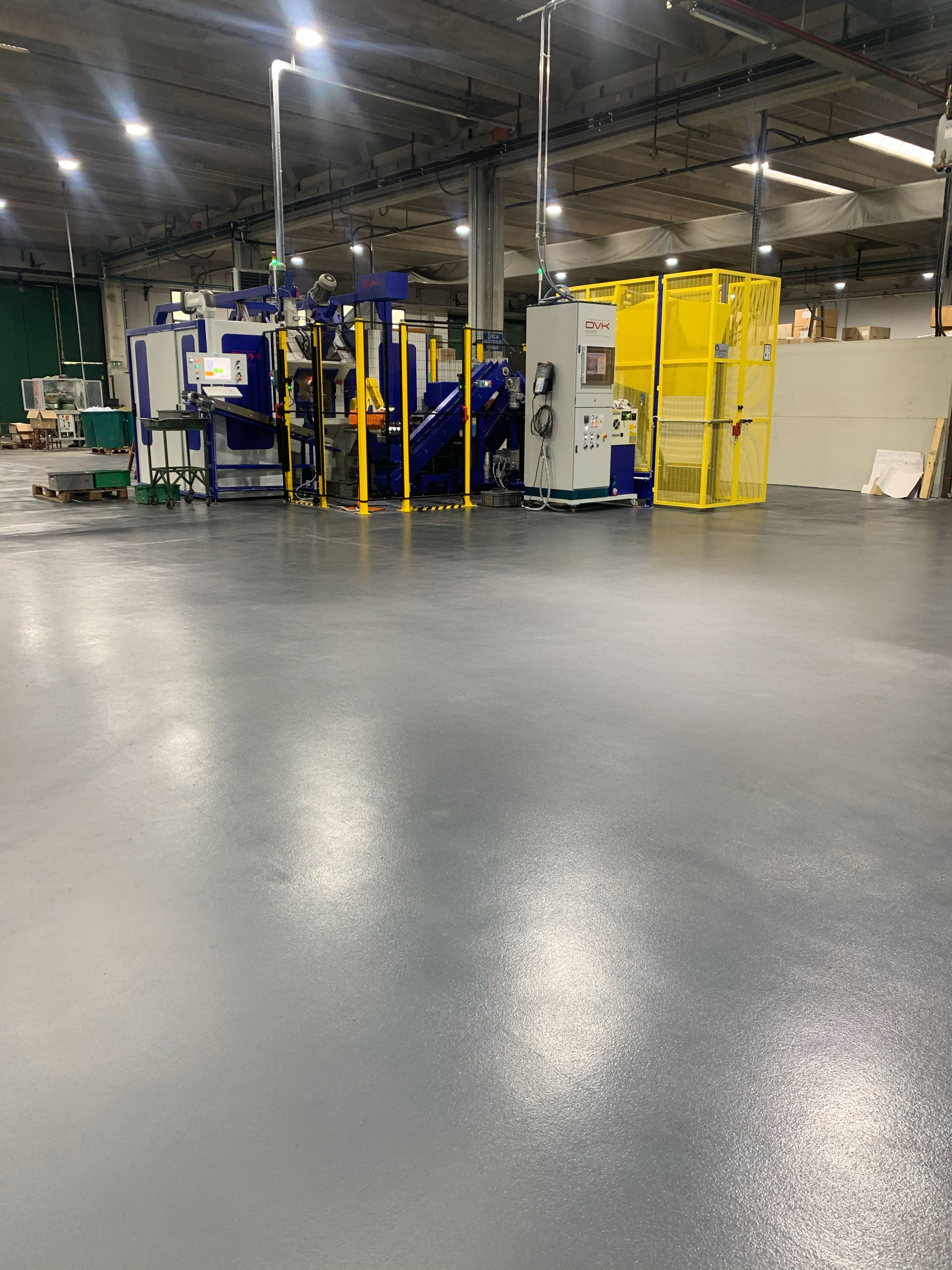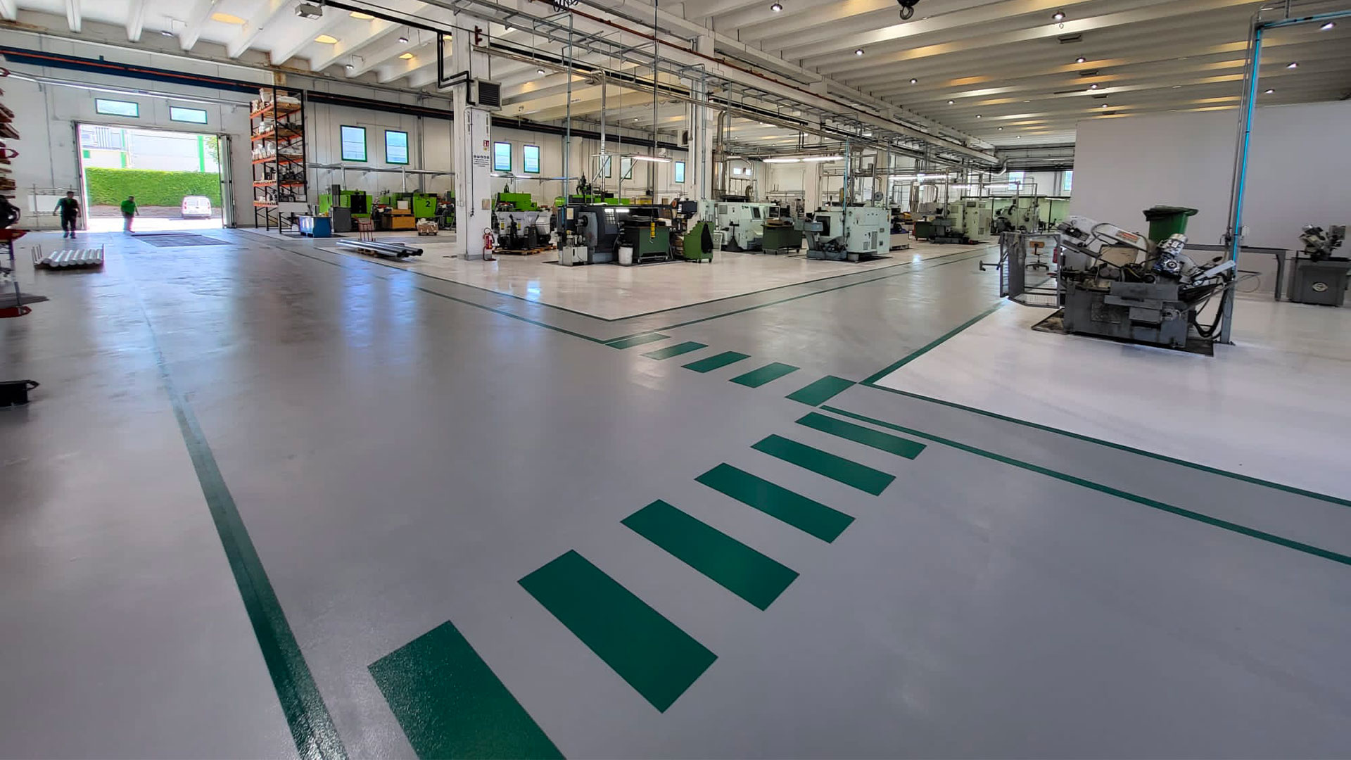 La resina permette di realizzare superfici resistenti nel tempo, antiscivolo e facili da pulire. Può essere posata su vecchie pavimentazioni (cls, piastrelle, resina etc.etc.) e consente di distinguere le diverse aree di lavoro.